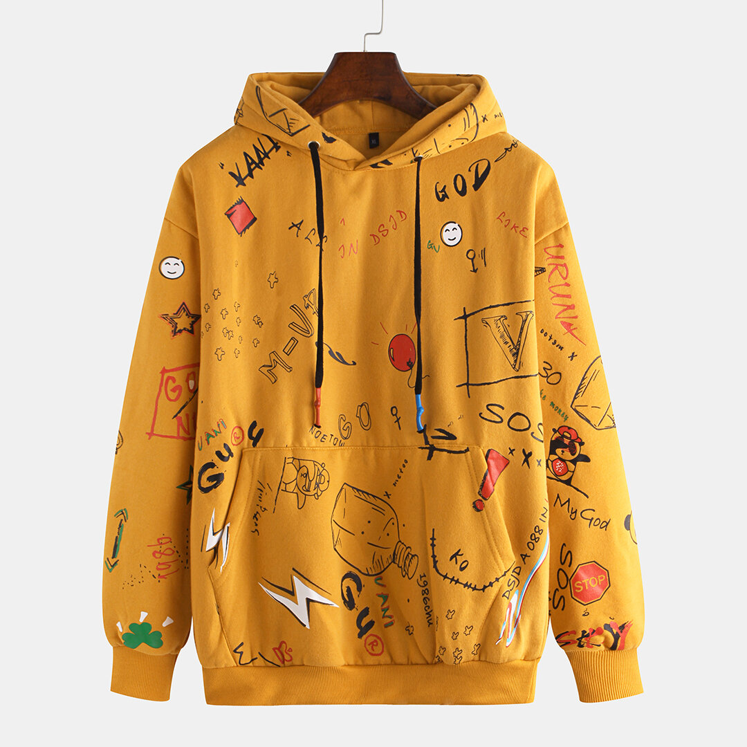 Item Type: Sweatshirt Pattern Type: Printing Gender: Men Fit Type: FitStyle: Casual,Fashion Thickness: ThickCollar: Turn Down Collar Season: Spring, AutumnDecorations:PatternMaterial: PolyesterSleeve Length: Long SleeveColor: White,Yellow,BlackCuff Type: Shirt Sleeve Occasion: Leisure,Home,Daylife Package includes:
