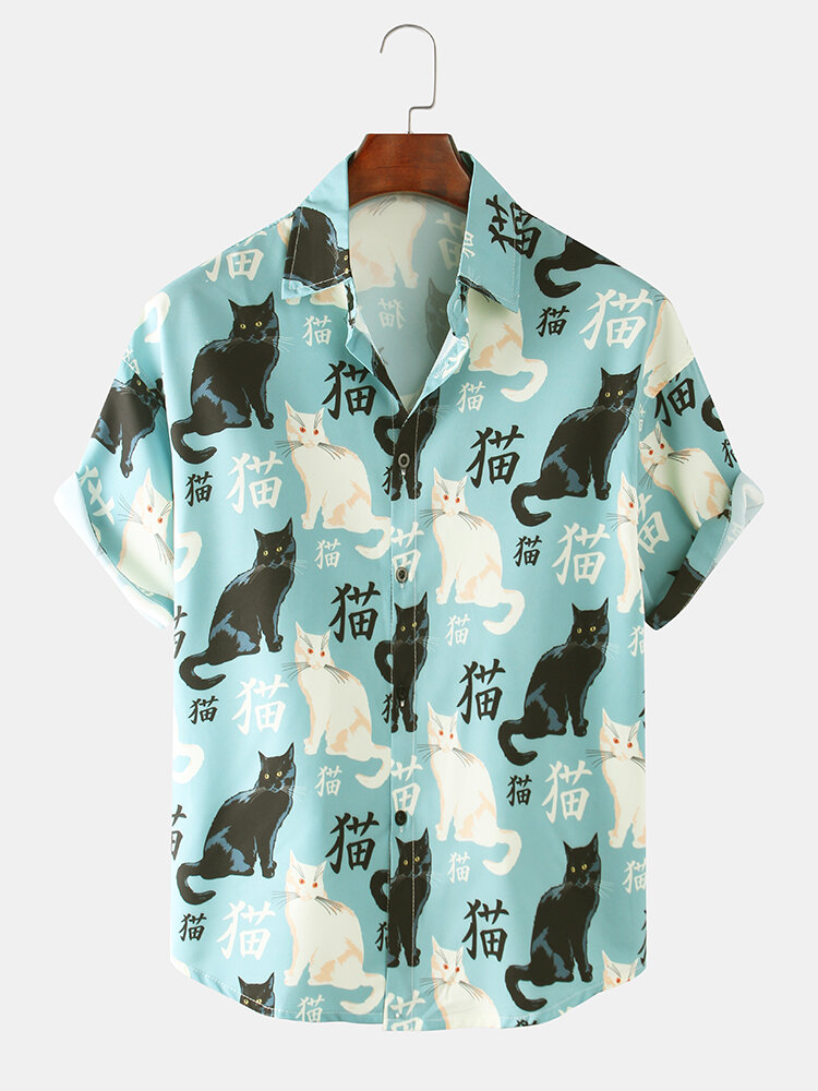 Mens Fashion Multi Patterns Cartoon Printing Breathable Casual Shirts – M #1