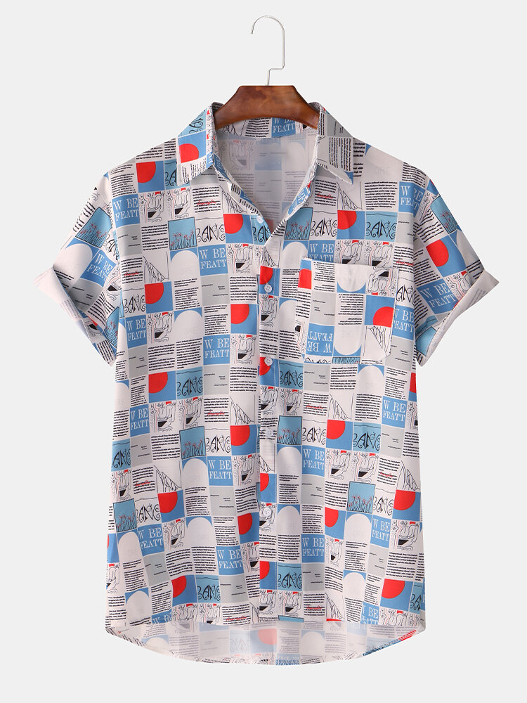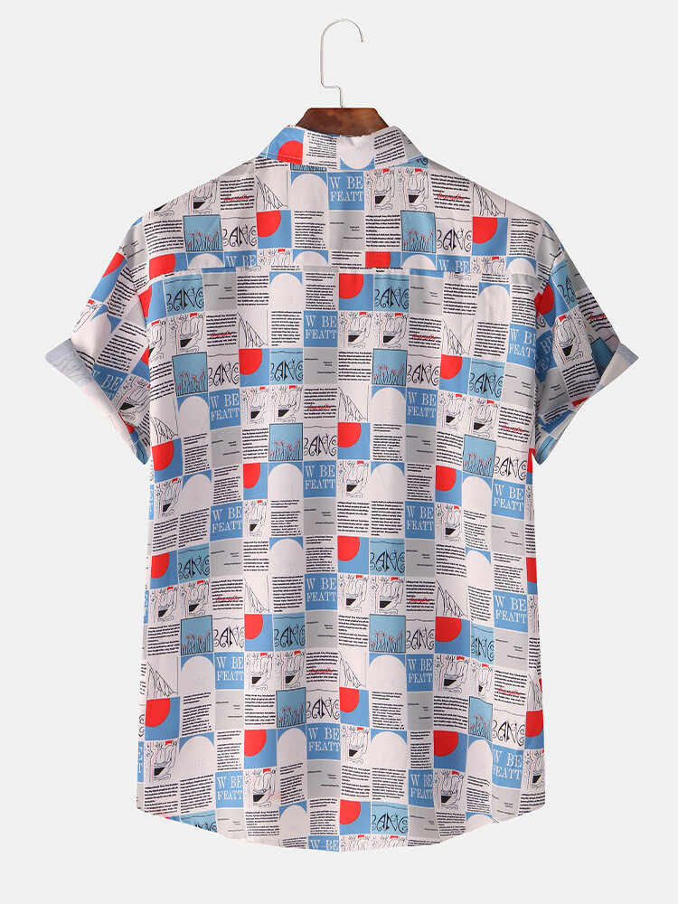 Closure Type:Single BreastedCollar:Turn-down CollarColor:WhiteCrafts:PrintingDecoration:PatternFit Type:FitLength:RegularMaterial:PolyesterOccasion:Casual,Home,LeisurePattern:PatchworkSeason:Spring,SummerSize:L,M,S,XLSleeve Length:Short SleeveStyle:Casual,Home,LeisureThickness:Regular