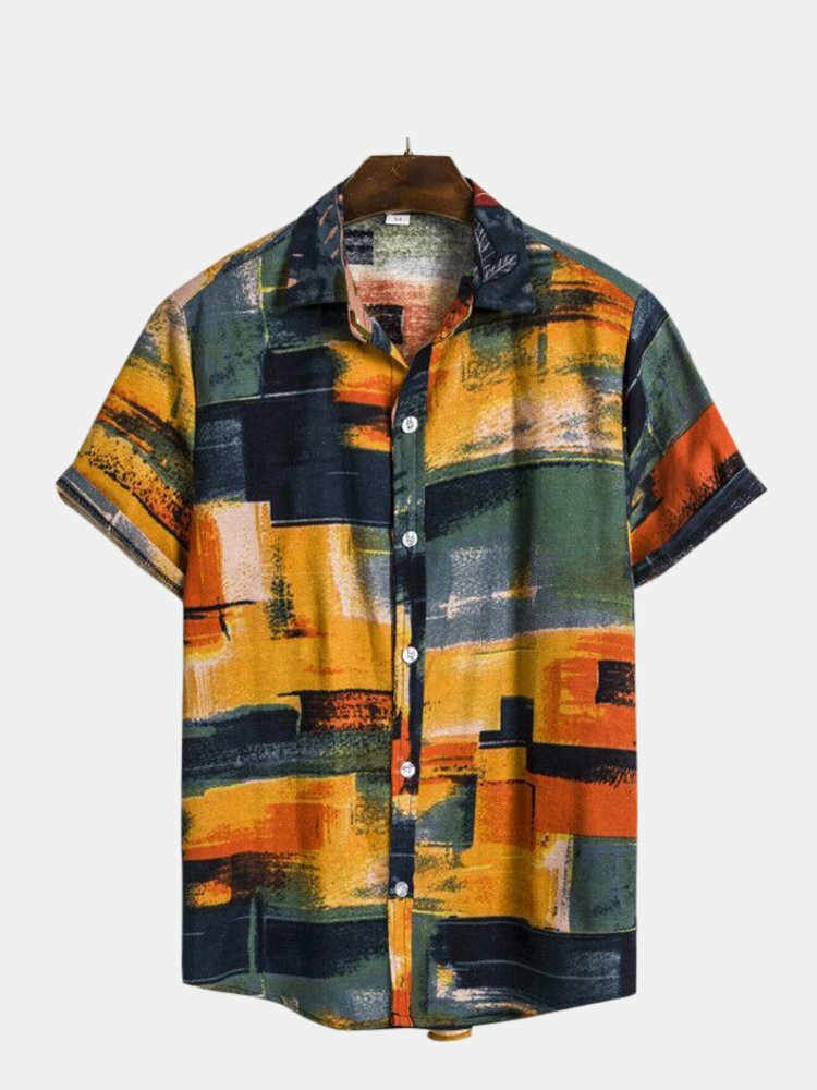 Item Type: Shirts Pattern Type: Plaid PrintedGender: Men Fit Type: FitStyle: Casual, Fashion Thickness: RegularCollar: Turn Down Collar Season: Spring, SummerMaterial: Cotton Color: As PictureCuff Type: Shirt Sleeve Occasion: LeisureSleeve Length: Short Sleeve Package includes