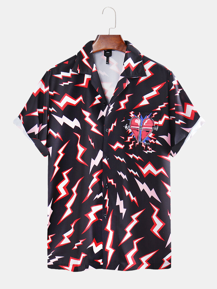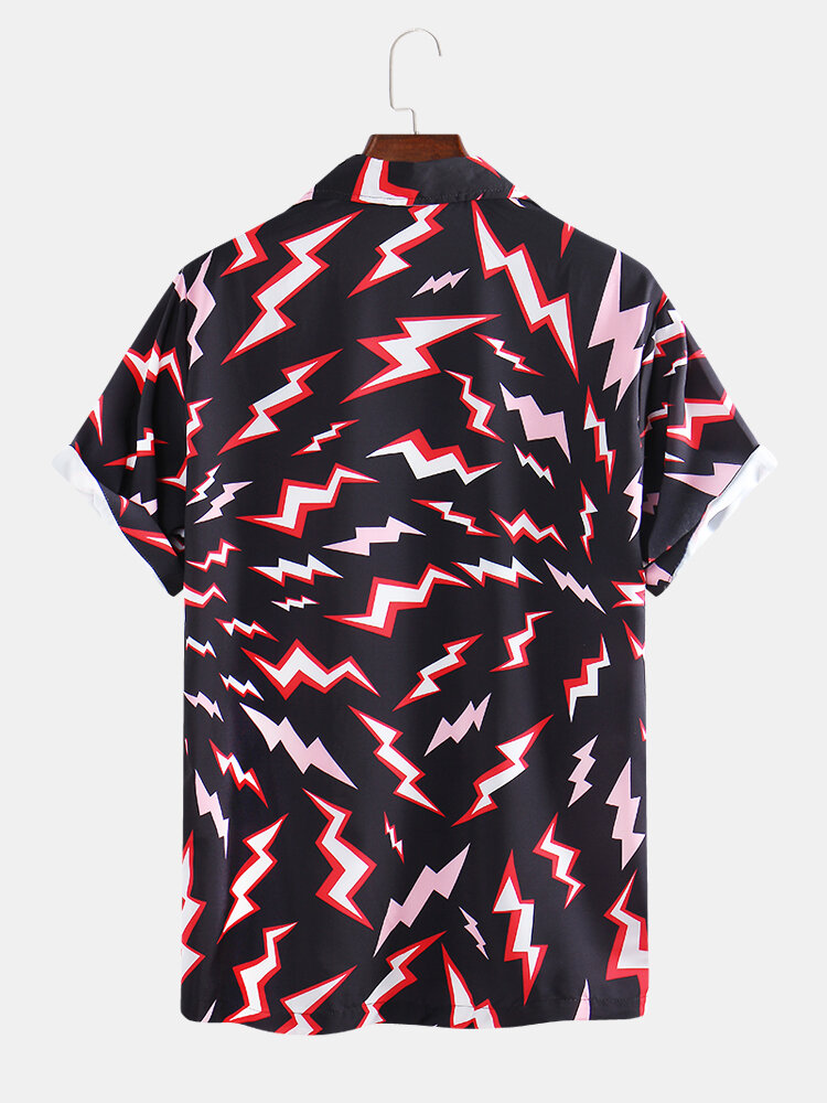 Item Type: ShirtsPattern Type: Printing  Gender: Men Fit Type: FitStyle: Casual,Fashion Thickness: RegularCollar: Turn Down CollarSeason: SummerDecorations:PrintingMaterial: 100% PolyesterSleeve Length: Short SleeveColor: Black Cuff Type: Shirt Sleeve Occasion: Leisure,Home,Daylife Package includes