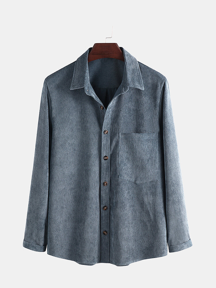 Mens Fashion Solid Color Pocket Thick Long Sleeve Shirts – XL Grey Blue