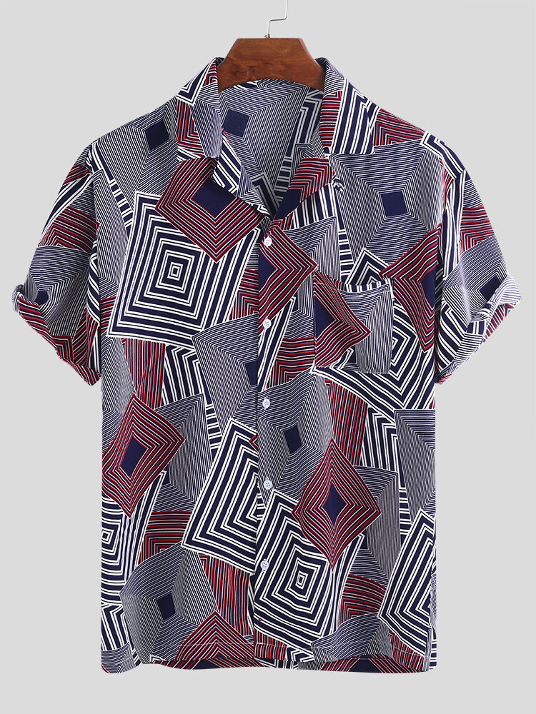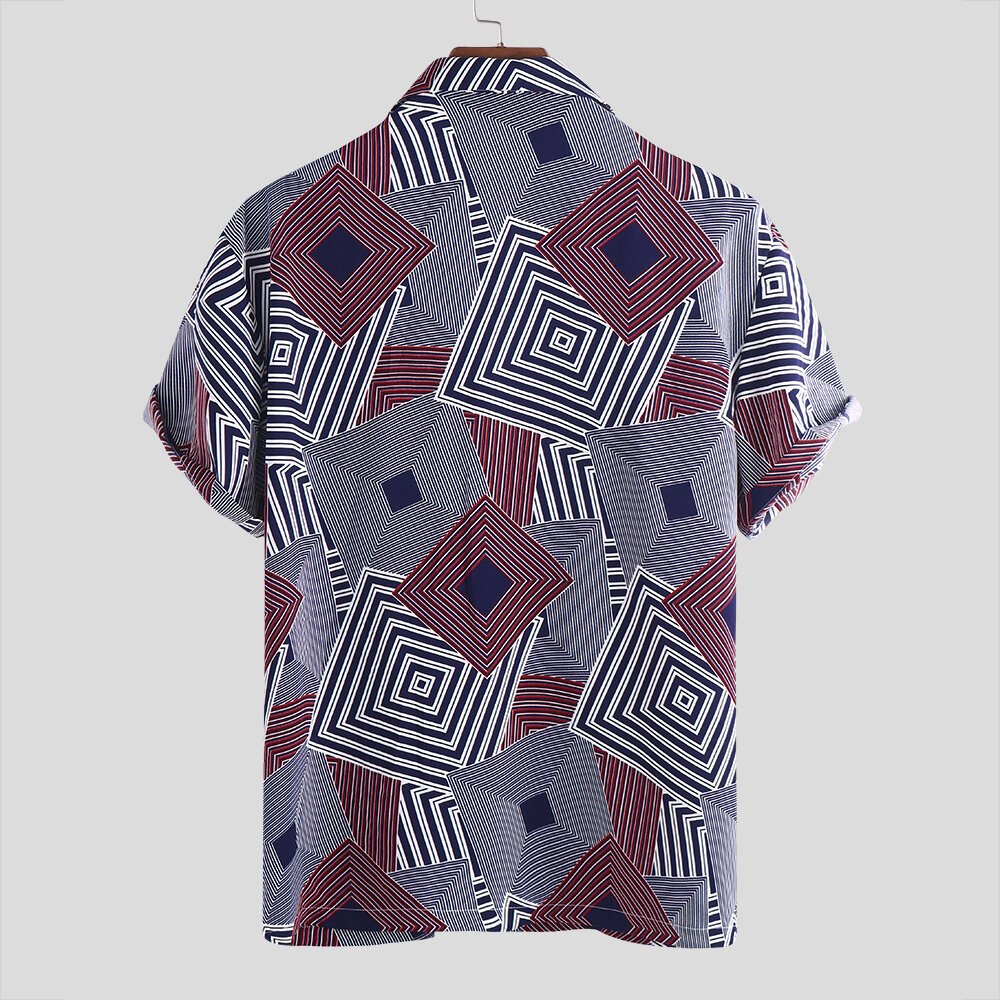 Mens Fashion Square Printing Casual Shirts – XL Navy