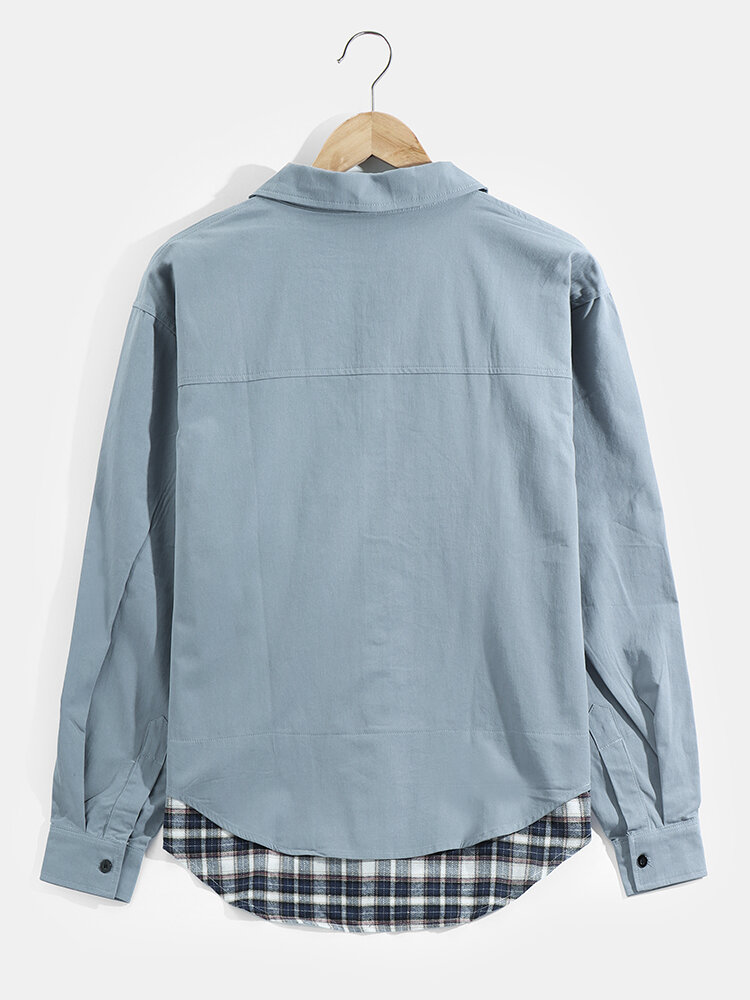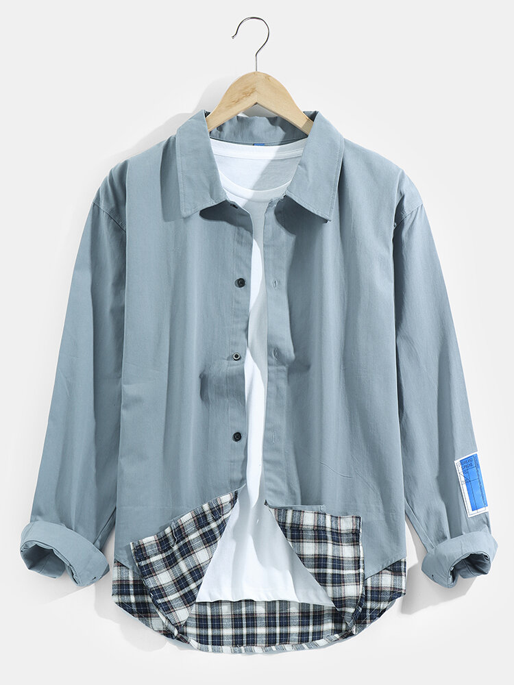 Description:Decoration:ButtonFit Type:Regular FitMaterial:CottonNeckline:LapelPattern Type:Plaid,SolidScene:Leisure,CasualSeason:Spring,AutumnSize:XXL,L,XL,MSleeve:Long SleeveStyle:CasualThickness:Regular