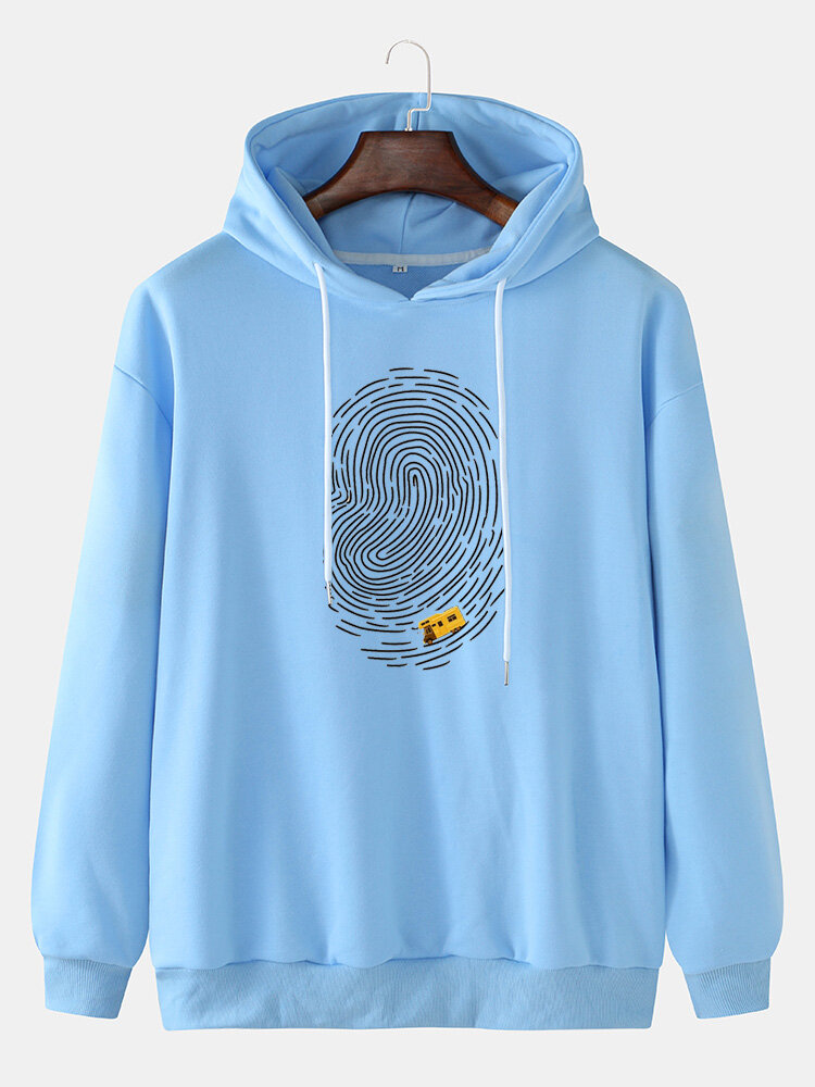 Mens Fingerprint Graphic Print Solid Casual Loose Drawstring Hoodie – White S