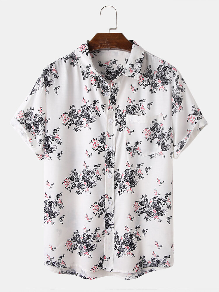Brand:ChArmkpRDecoration:PocketFit Type:Regular FitMaterial:PolyesterNeckline:LapelPattern Type:Ditsy FloralScene:Beach,CasualSeason:Spring,SummerSize:XXL,L,S,XL,MSleeve:Short SleeveStyle:Casual,Hawaii StyleThickness:Regular