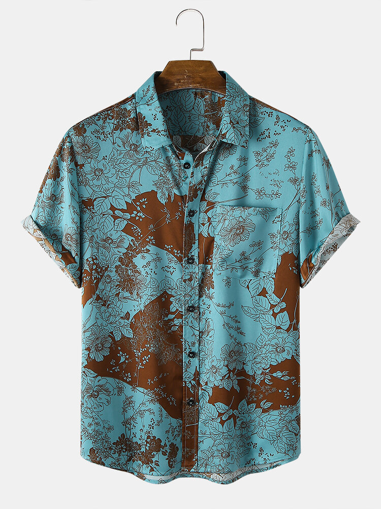 Brand:ChArmkpRDecoration:PocketFit Type:Regular FitMaterial:PolyesterNeckline:LapelPattern Type:Ditsy FloralScene:Beach,CasualSeason:Spring,SummerSize:XXL,L,S,XL,MSleeve:Short SleeveStyle:Casual,Hawaii StyleThickness:Regular