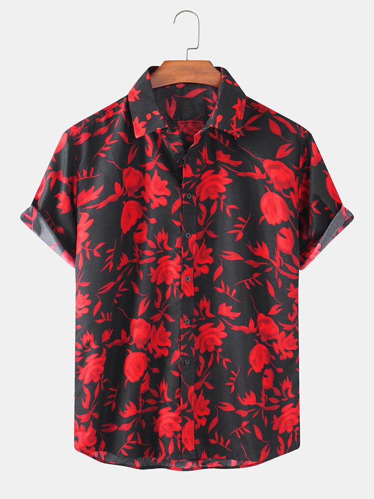 Decoration:ButtonFit Type:Loose FitMaterial:CottonNeckline:LapelPattern Type:FloralScene:Leisure,CasualSeason:Spring,SummerSize:XXL,L,XL,MSleeve:Short SleeveStyle:Casual