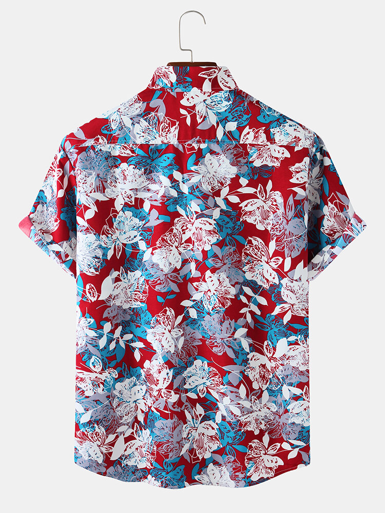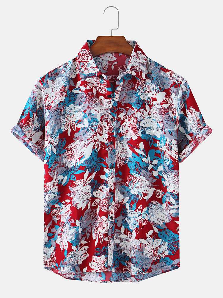 Description:Decoration:ButtonFit Type:Regular FitMaterial:PolyesterNeckline:LapelPattern Type:FloralScene:Leisure,CasualSeason:Spring,SummerSize:L,S,XL,MSleeve:Short SleeveStyle:Casual
