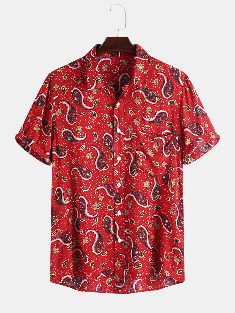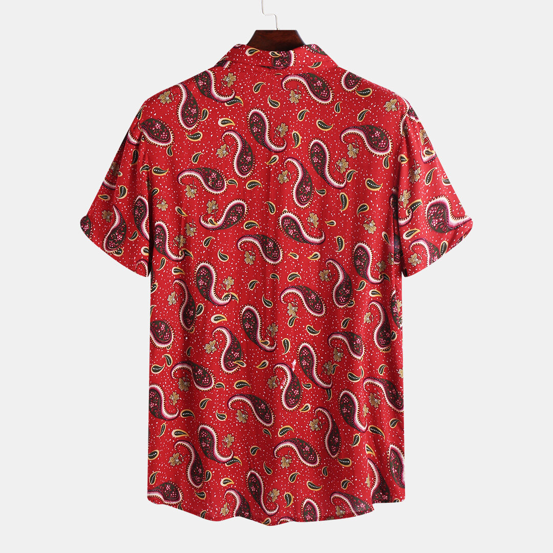 Mens Floral Printed Summer Short Sleeve Loose Hawaiian Shirts – M Red