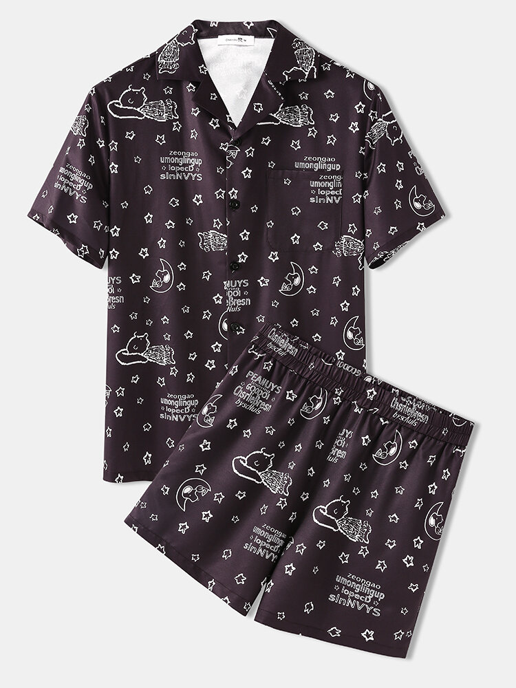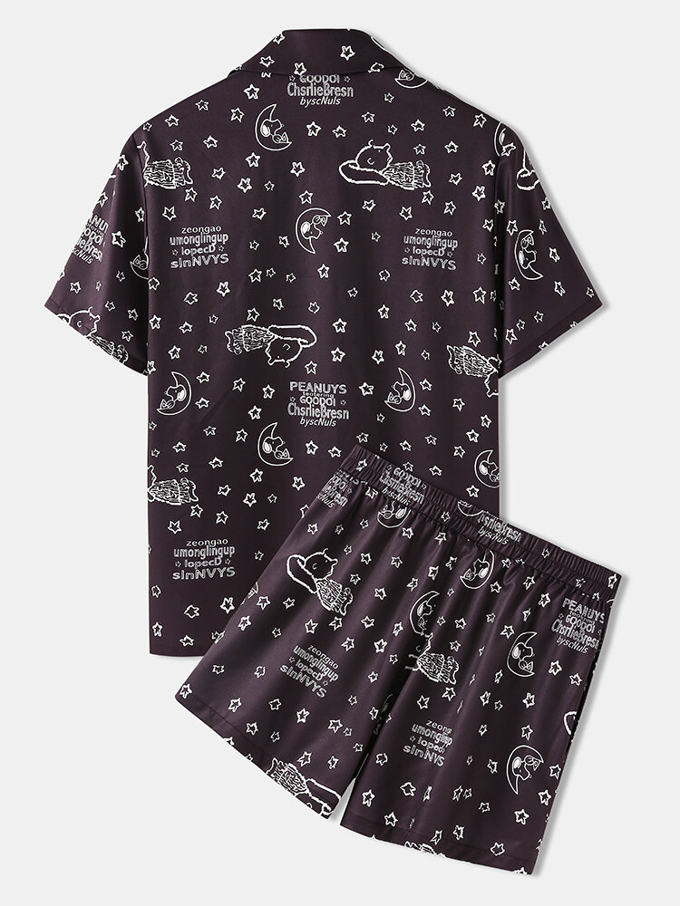 Mens Fnuuy Star Cartoon Print Short Sleeve Two Piece Loose Casual Pajama Set – Dark Grey M