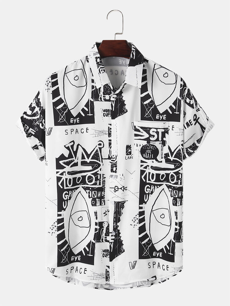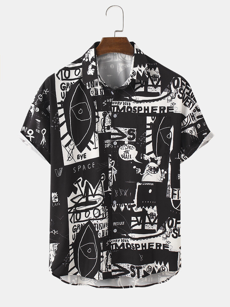 Mens Funny Abstract Pattern Print Short Sleeve Shirts – Black S