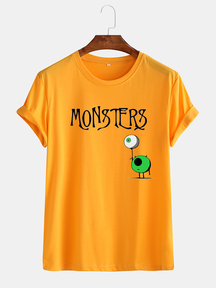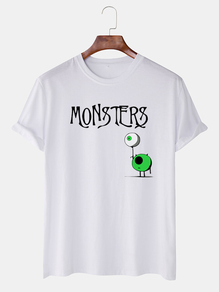 Mens Funny Cartoon Big-Eyed Printed Round Neck Loose Short Sleeve T-Shirts – Light Blue S