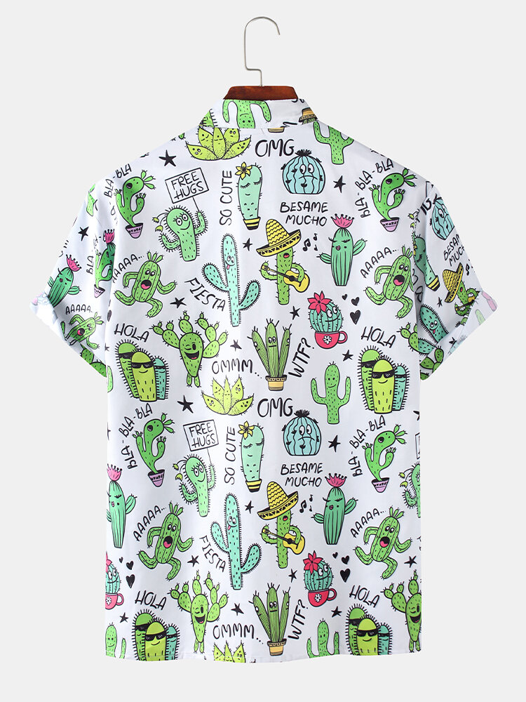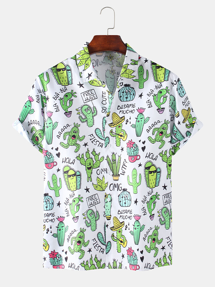 Decoration:ButtonFit Type:Regular FitMaterial:PolyesterNeckline:LapelPattern Type:CartoonScene:Leisure,CasualSeason:SummerSize:XXL,L,XL,MSleeve:Short SleeveStyle:Casual,CartoonPackage Included: 1*Shirt