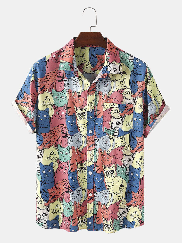 Description:Decoration:Pocket,ButtonFit Type:Regular FitMaterial:PolyesterNeckline:LapelPattern Type:Animal,CartoonScene:Leisure,Home,CasualSeason:SummerSize:XXL,L,S,XL,MSleeve:Short SleeveStyle:Casual,Cartoon