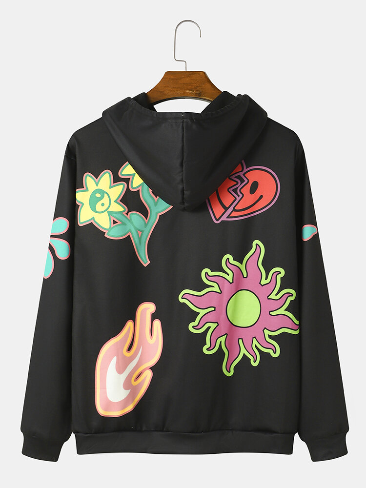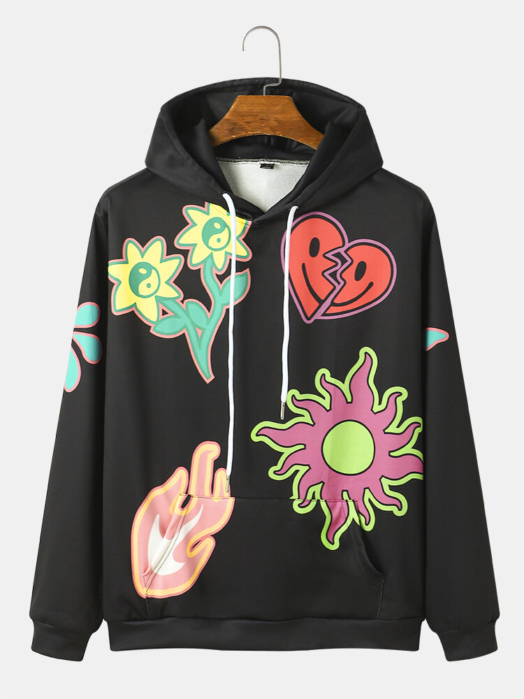 Mens Funny Cartoon Drawstring Casual Hoodies – Black M