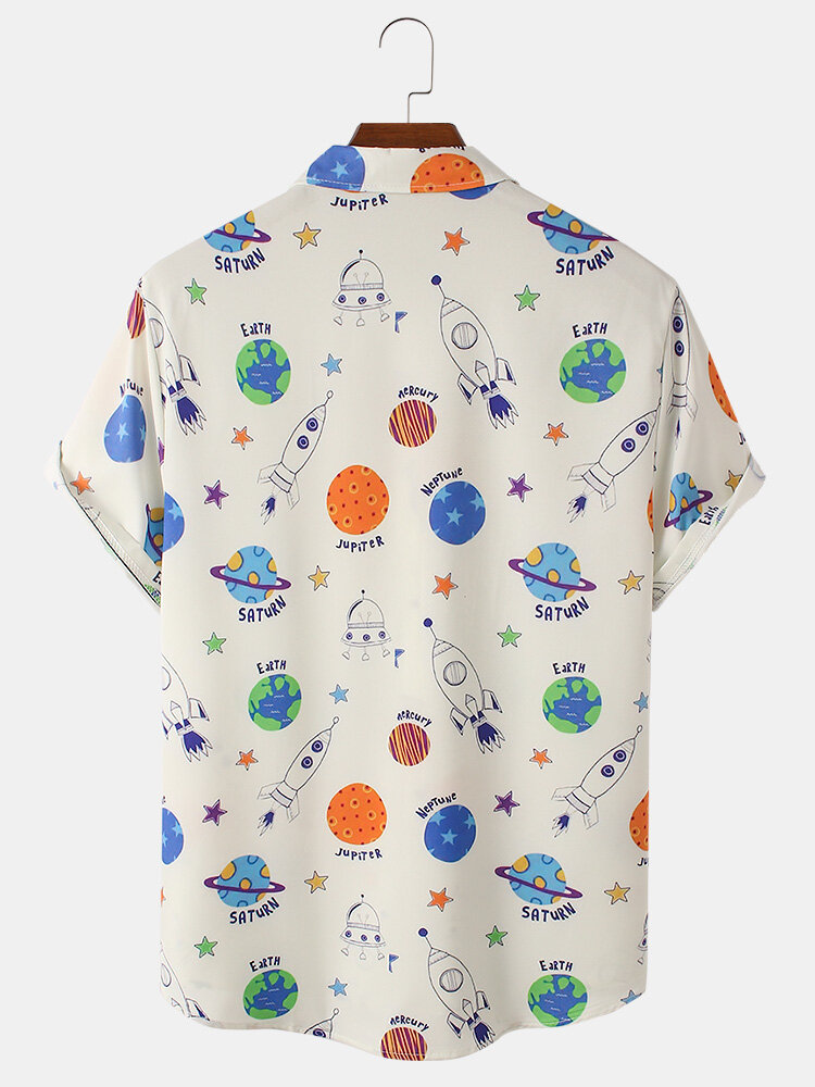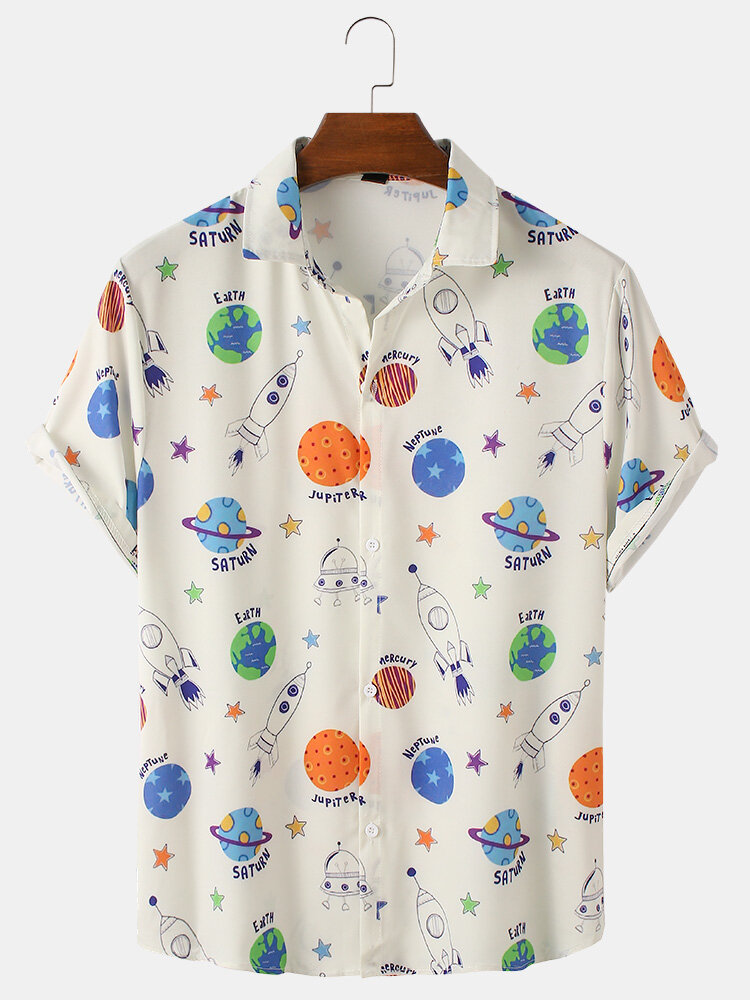 Mens Funny Cartoon Letter Print Light Casual Loose Short Sleeve Shirts – White S
