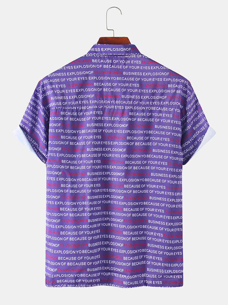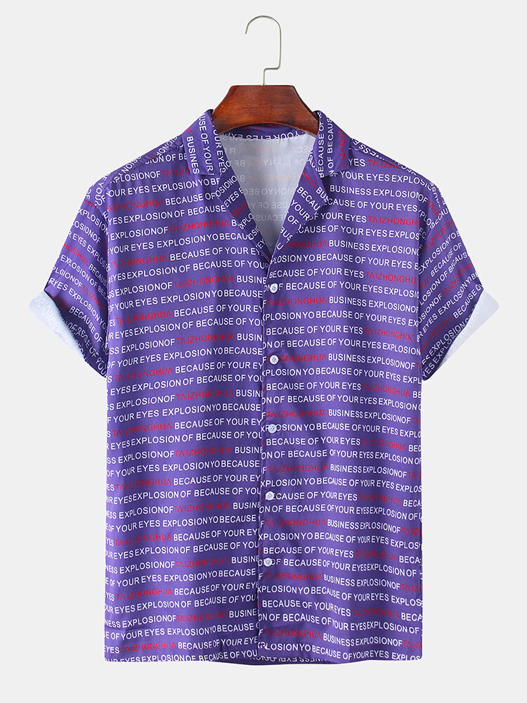 Item Type:ShirtPattern Type:PrintGender: MenFit Type: FitStyle: Casual,FashionThickness: RegularCollar: Revere CollarSeason: SummerDecorations: ButtonMaterial:PolyesterSleeve Length: Short Sleeve Color: Purple,WhiteCuff Type: Straight SleevesOccasion: Leisure,Home,Daylife