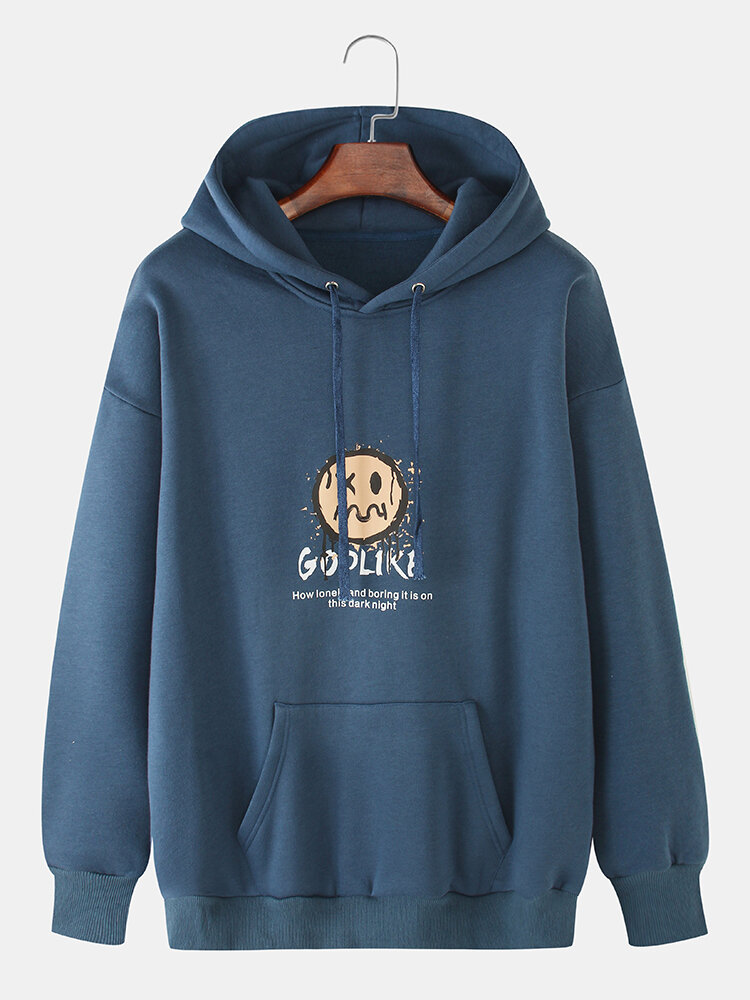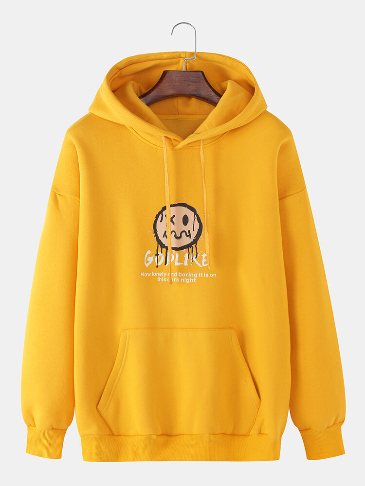 Mens Funny Emojis Letter Print Drawstring Hoodies With Kangaroo Pocket – White L