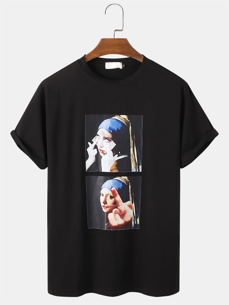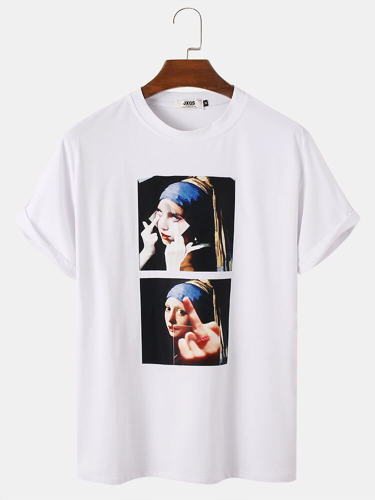 Description:Fit Type:Regular FitMaterial:CottonNeckline:Round NeckPattern Type:FigureScene:Leisure,Home,CasualSeason:Spring,SummerSize:M,L,SSleeve:Short SleeveStyle:CasualThickness:Regular