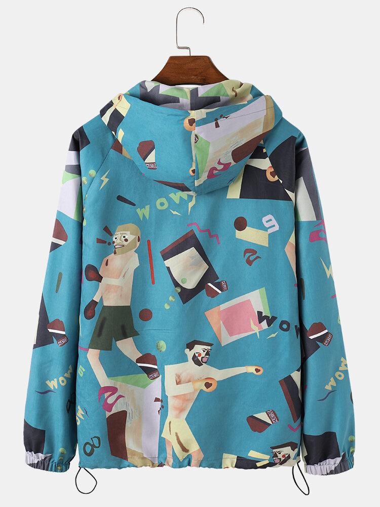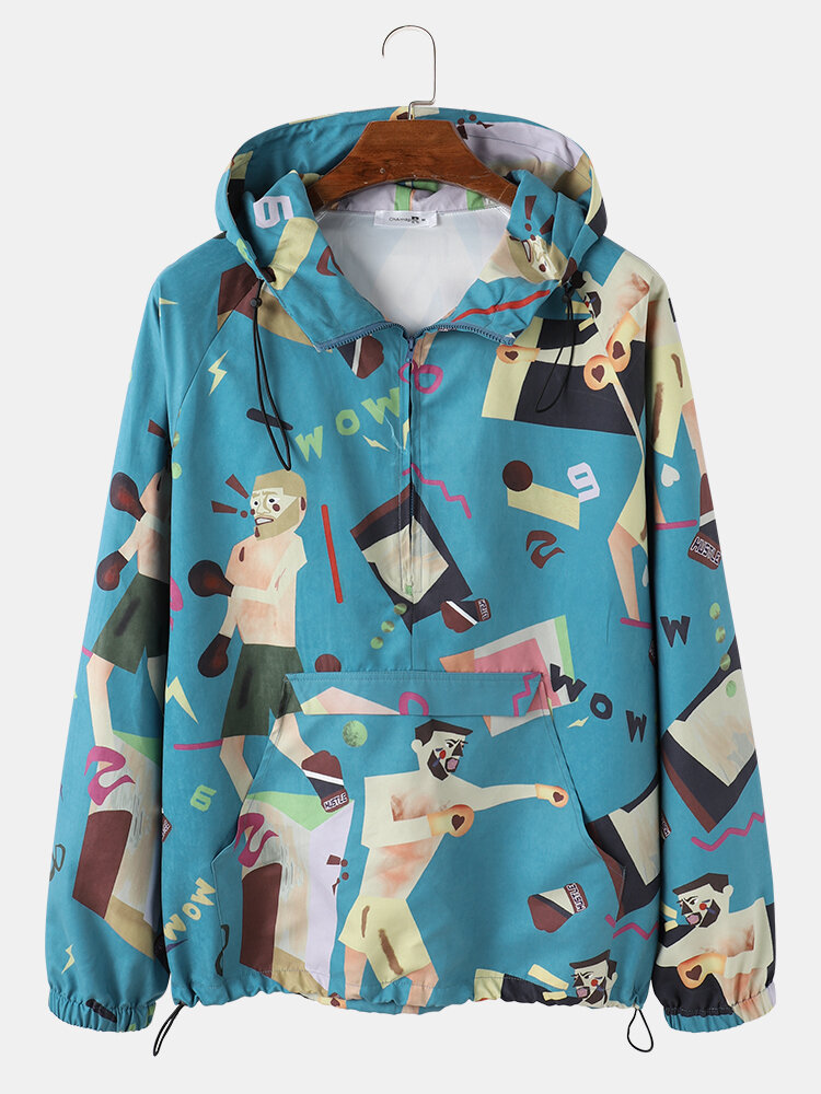 Mens Funny Figure Print Half Zipper Hoodie Portable Windbreaker Jacket – Blue S