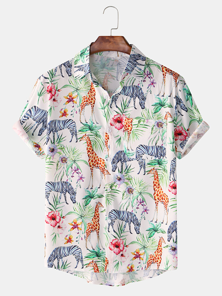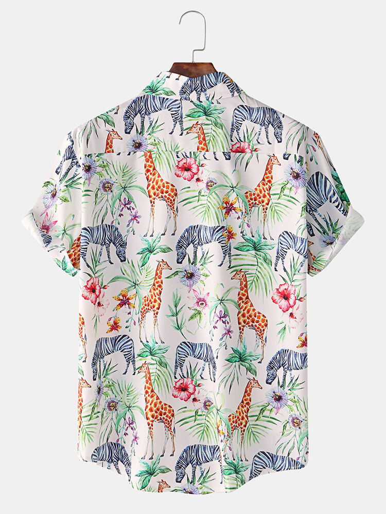 Mens Funny Giraffe Printing Breathable Short Sleeve Casual Shirts – Black S