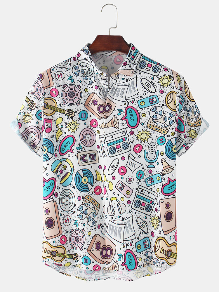 Mens Funny Multi Abstract Patterns Cartoon Short Sleeve Causal Shirts – White XL