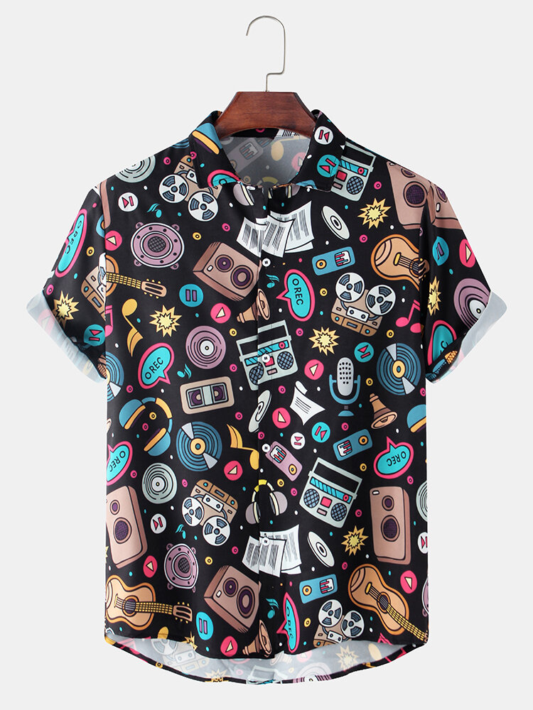 Decoration:Pattern,CartoonFit Type:Regular FitMaterial: 100% PolyesterNeckline:LapelPattern Type:CartoonScene:Leisure,Home,CasualSeason:SummerSize:XXXL,XXL,L,XL,XXXXL,MSleeve:Short SleeveStyle:Casual,CartoonThickness:Regular