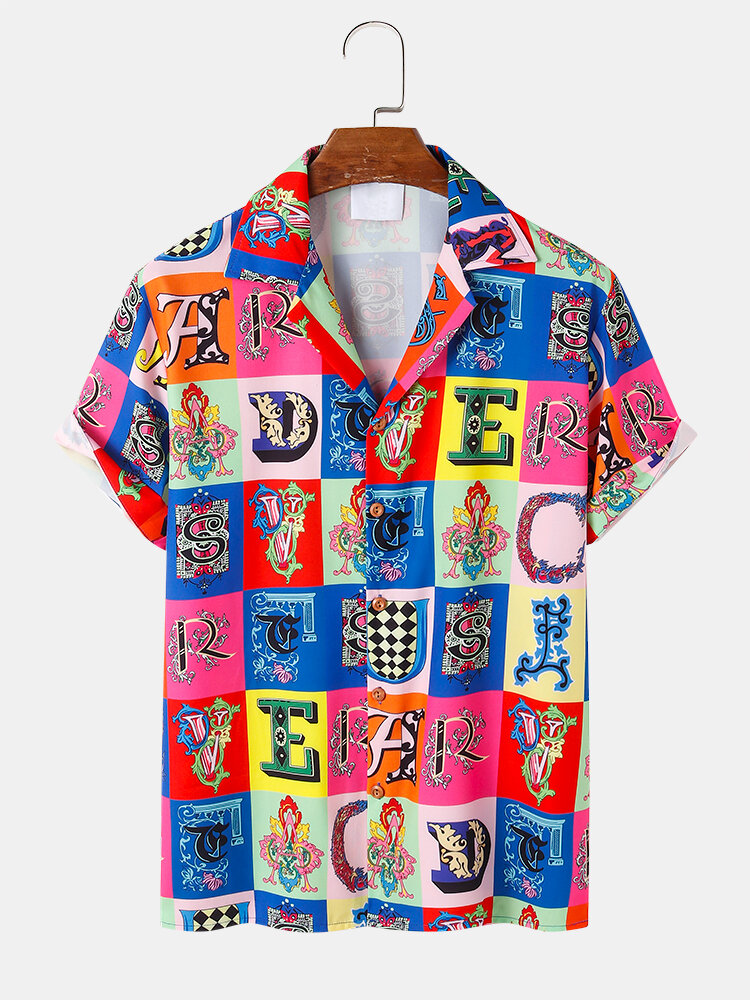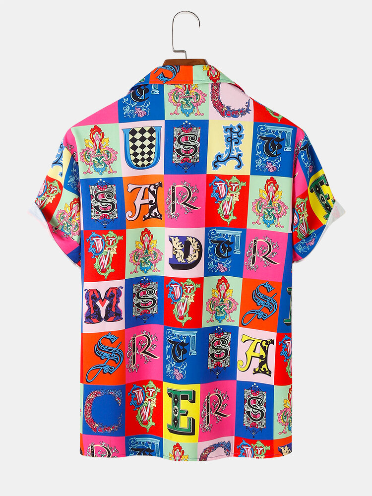 Mens Funny Multi Patterns Casual Shirts – Red S