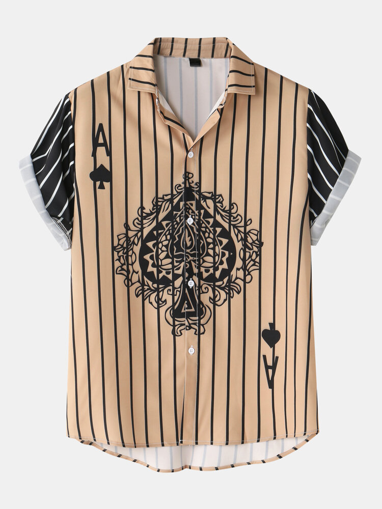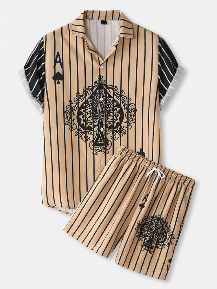 Mens Funny Poker Pattern Patchwork Striped Shirts & Shorts Co-ords – Brown S