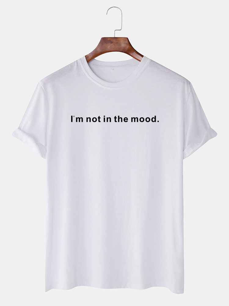 Mens Funny Slogan Print Breathable Round Neck Short Sleeve T-shirts – White S