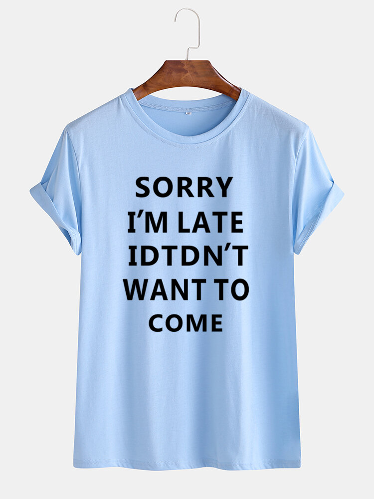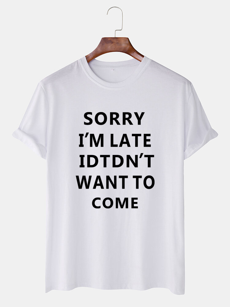 Mens Funny Slogan Short Sleeve Round Neck Loose T-Shirts – White S