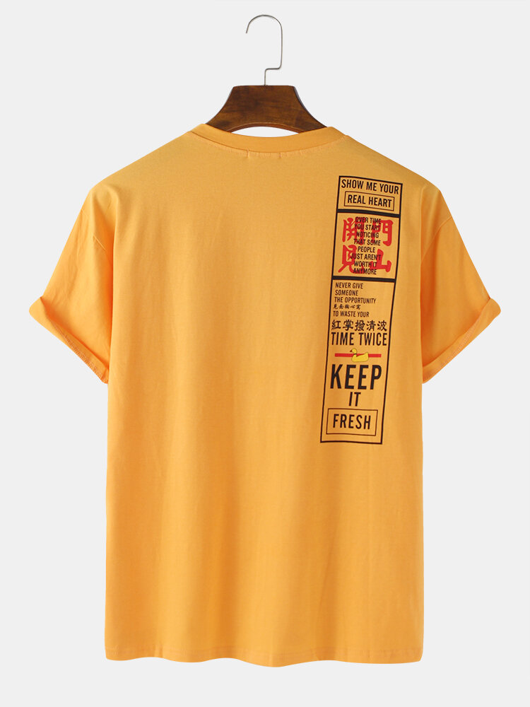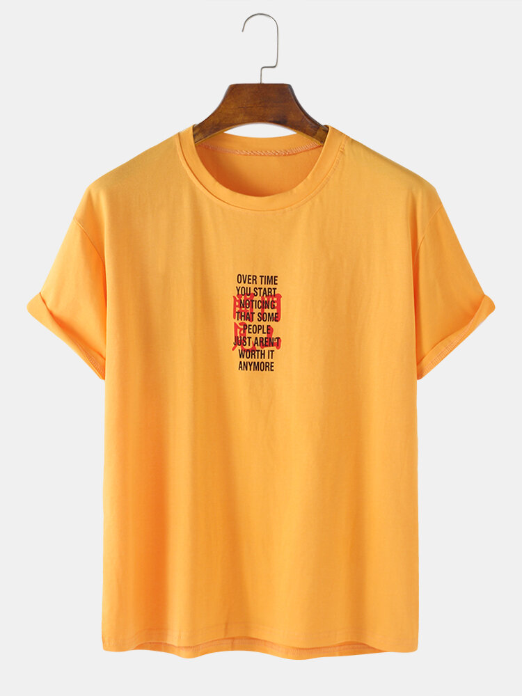 Mens Funny Text Print Crew Neck Short Sleeve Loose T-Shirts – White S