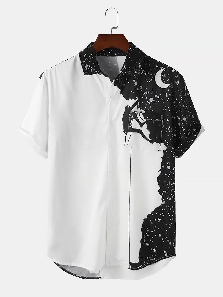 Brand:ChArmkpRDecoration:Pocket,PatternFit Type:Regular FitMaterial: 95% Polyester,5% SpandexNeckline:LapelPattern Type:GalaxyScene:Leisure,Home,CasualSeason:SummerSize:XXL,L,S,XL,MSleeve:Short SleeveStyle:CasualThickness:Regular