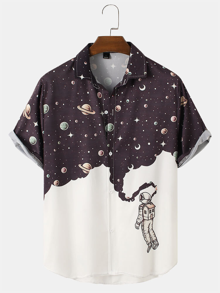 Description:Fit Type:Regular FitMaterial:PolyesterNeckline:LapelPattern Type:Figure,GalaxyScene:Leisure,Home,CasualSeason:Spring,SummerSize:XXL,L,XL,MSleeve:Short SleeveStyle:Casual,CuteThickness:Regular
