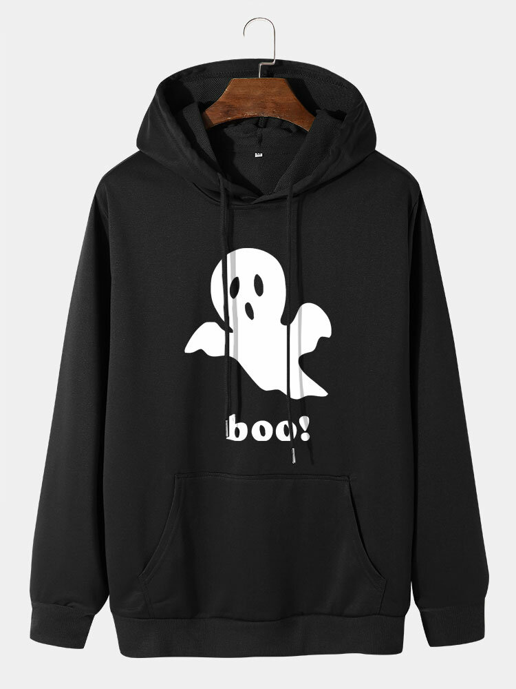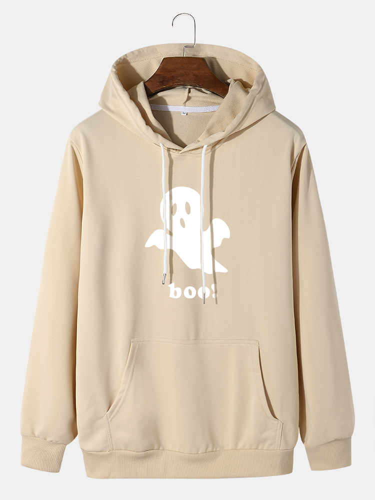 Mens Ghost Cartoon Casual Hoodies – Green M