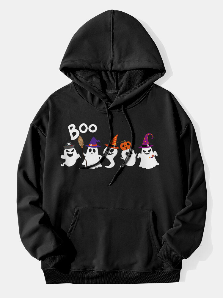 Mens Ghost Drawstring Casual Sweatshirt – Black S