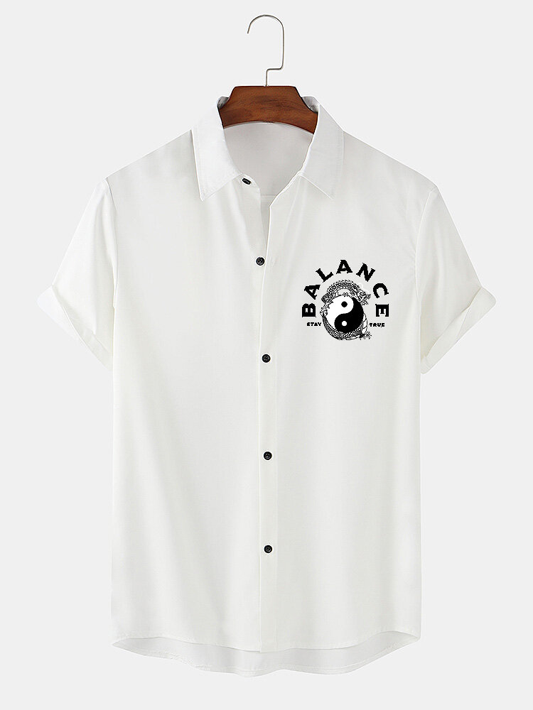 Mens Gossip Array Pattern Short Sleeve Shirts – White S