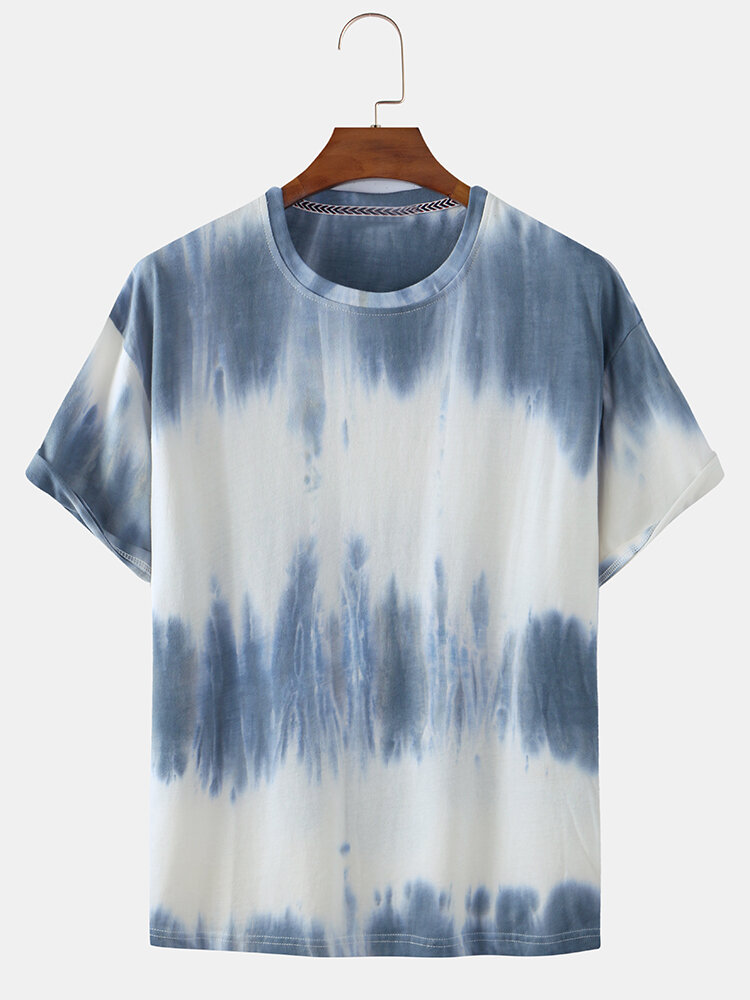 Mens Gradient Color Print Summer Breathable Loose O-Neck T-Shirts – Grey XL