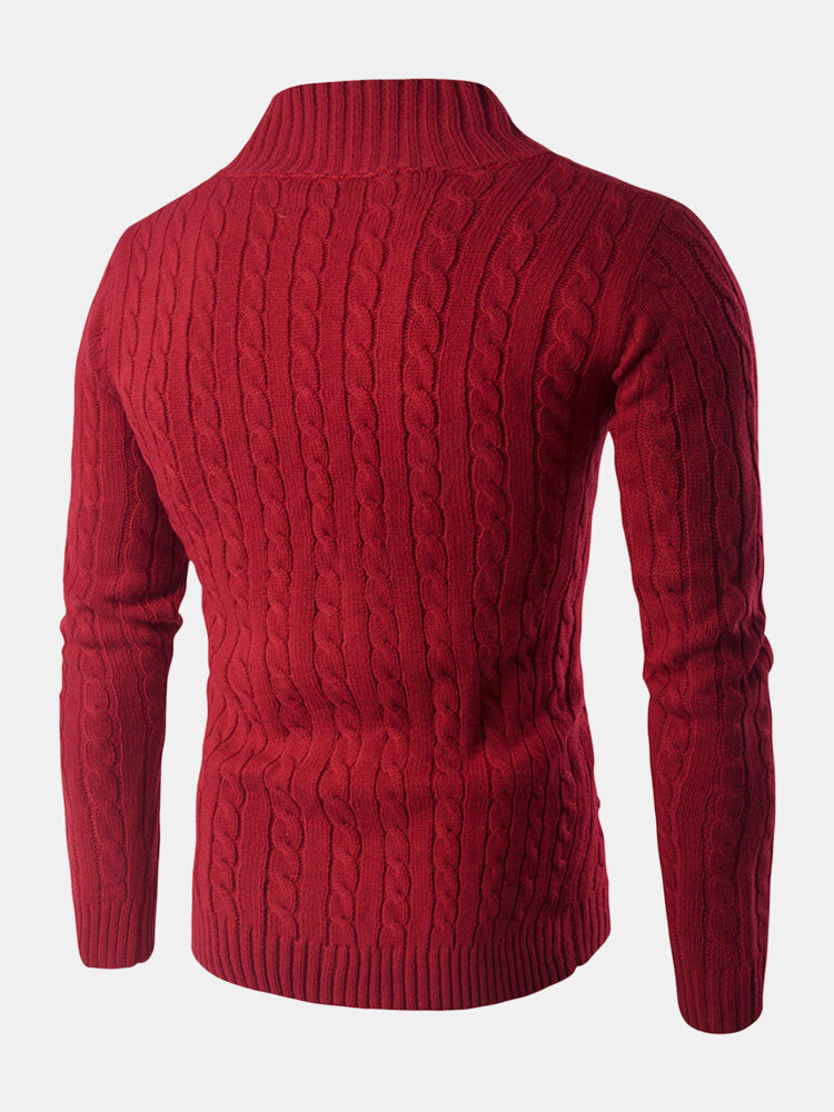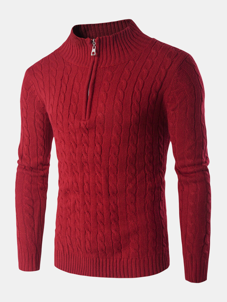 Mens Half Zipper Long Sleeve Cable Knitted Sweaters – S Red