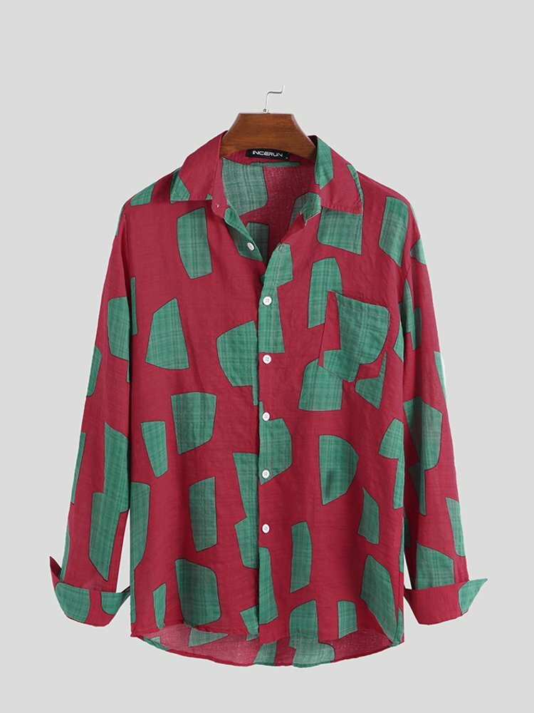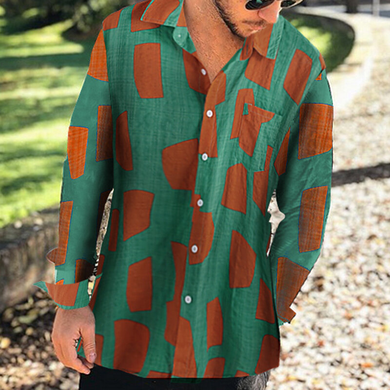 Product Description:Men’s fashion casual irregular printed long-sleeved shirt.