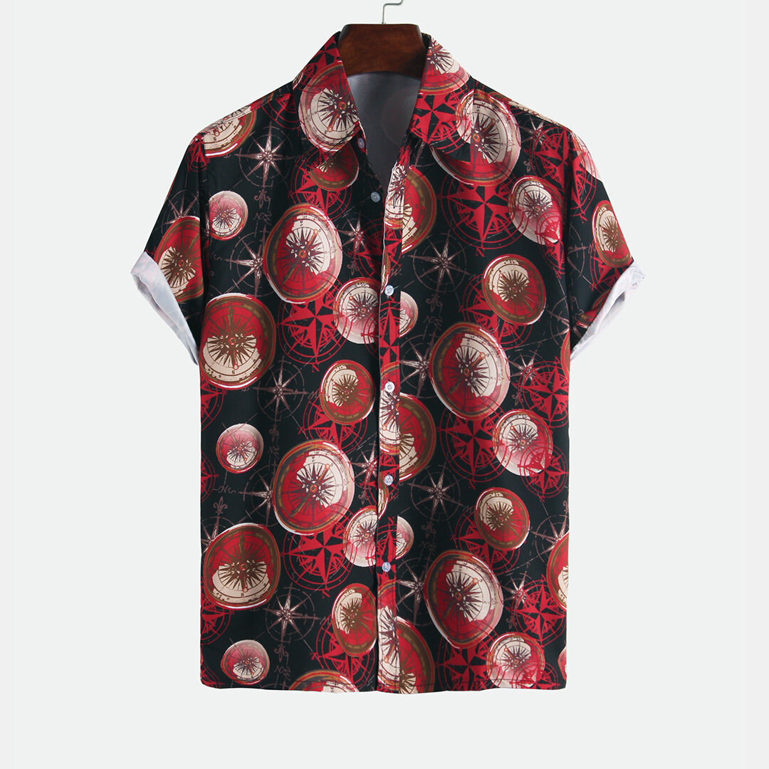 Item Type: Shirts Pattern Type: PrintedGender: Men Fit Type: FitStyle: Casual, Fashion Thickness: RegularCollar: Turn-down Collar Season: Spring, SummerMaterial: Polyester Sleeve Length:Short SleeveColor: Purple,RedCuff Type: Shirt Sleeves Occasion: Leisure Package includes