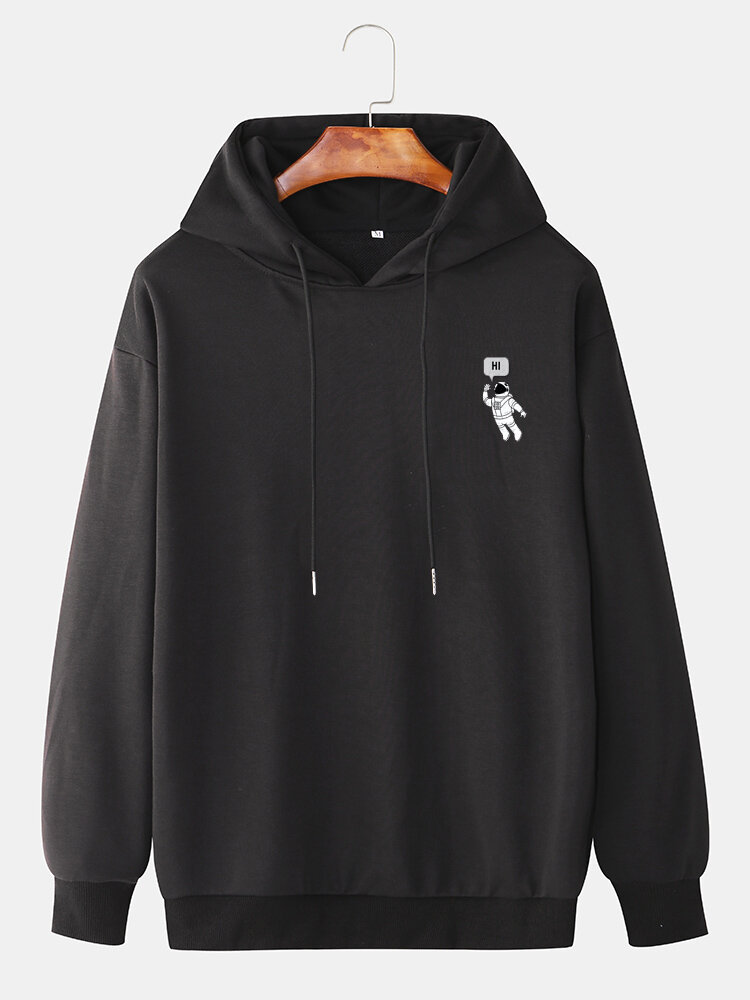 Mens Hi Astronaut Solid Color Drawstring Pullover Casual Hoodie – Sky Blue L