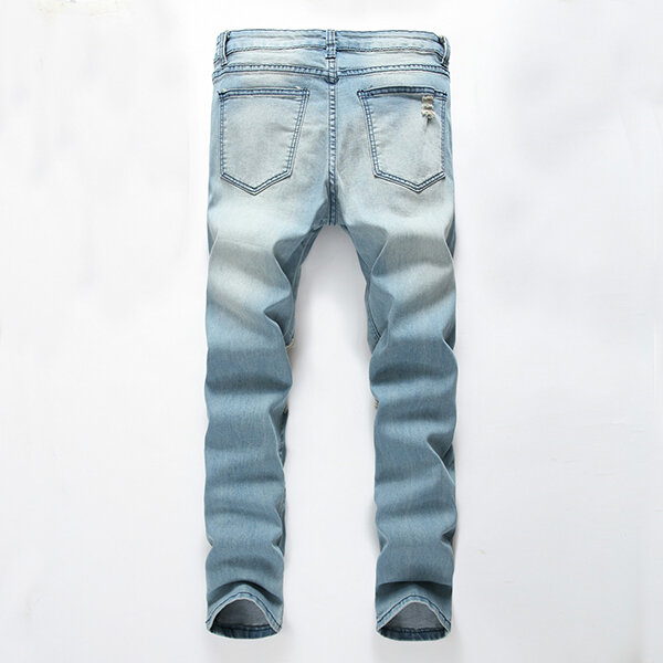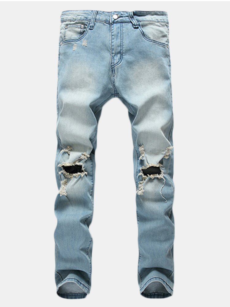 Mens Holes Fashion Casual Straight Legs Jeans Vintage Light Blue Denim Pants – 30