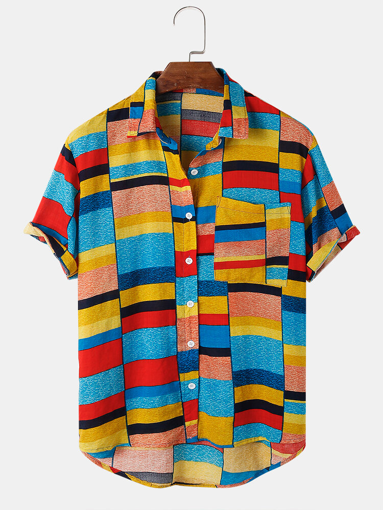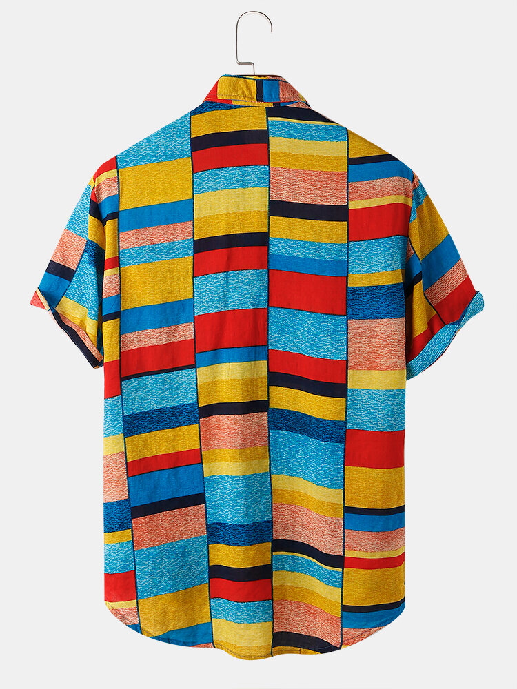 Mens Holiday Color Block Breathable Casual Shirts – Yellow S