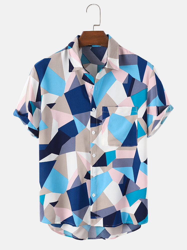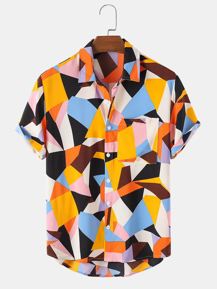 Brand:ChArmkpRDecoration:Pocket,ButtonFit Type:Regular FitMaterial:Spandex,PolyesterNeckline:LapelPattern Type:Color BlockScene:Leisure,Home,Beach,CasualSeason:SummerSize:XXL,L,S,XL,MSleeve:Short SleeveStyle:Casual,Hawaii StyleThickness:Regular