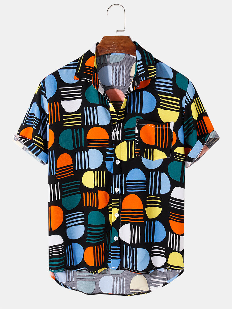Brand:ChArmkpRDecoration:PocketFit Type:Regular FitMaterial: 100% PolyesterNeckline:LapelPattern Type:GeometricScene:Leisure,Home,CasualSeason:SummerSize:XXL,L,S,XL,MSleeve:Short SleeveStyle:CasualThickness:Regular