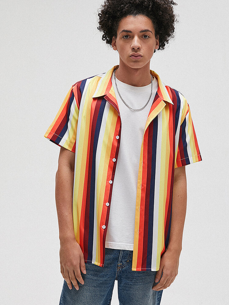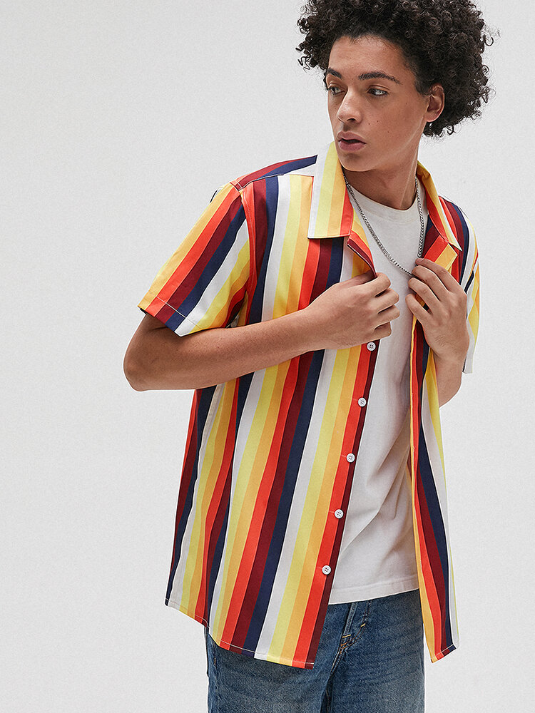 Mens Holiday Colorful Striped Casual Turn-down Collar Shirts – M #01