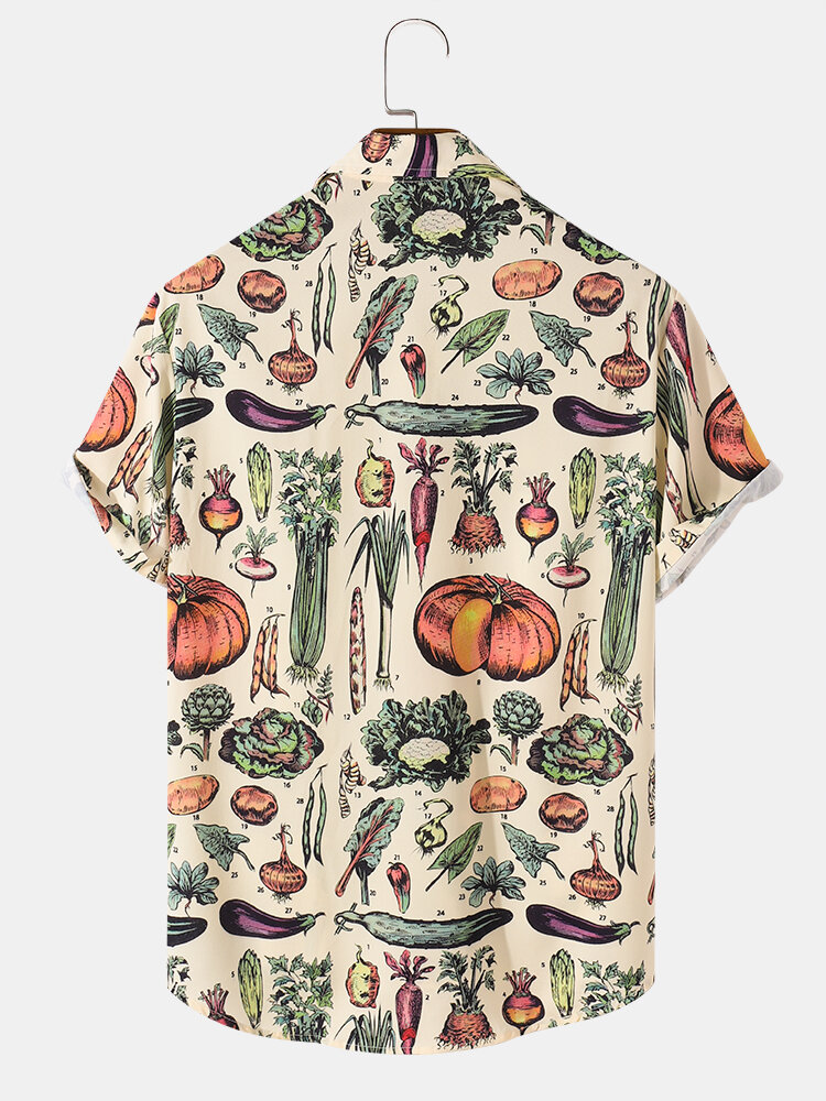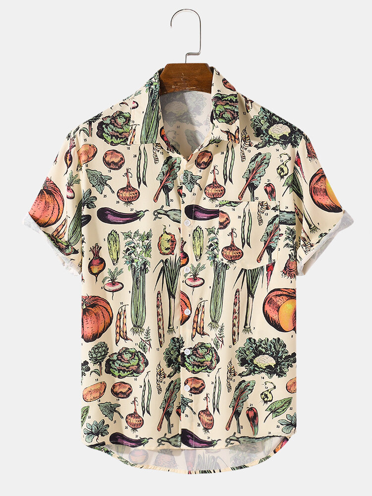 Mens Holiday Fruit Cartoon Short Sleeve Casual Shirts – Apricot L