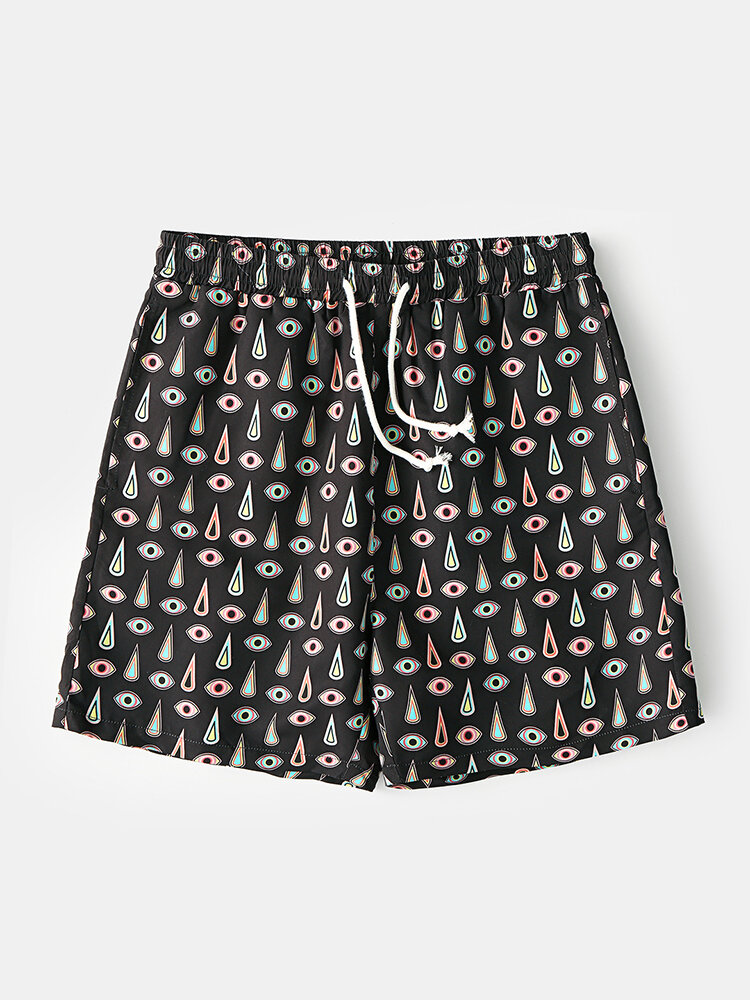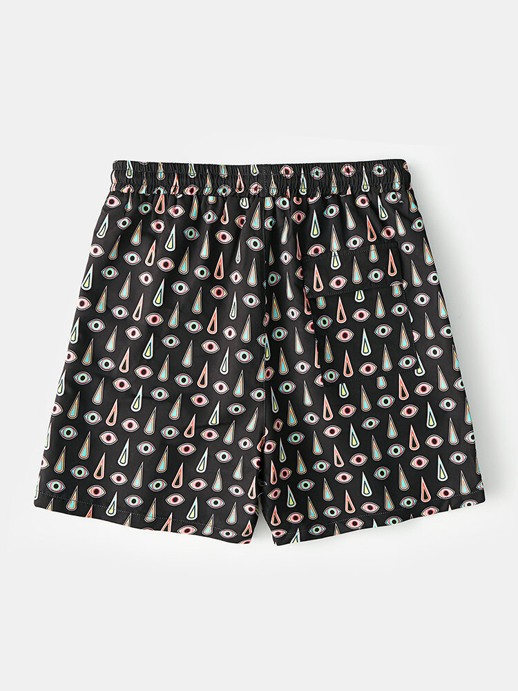 Mens Holiday Funny Printing Breathable Drawstring Quick Drying Mini Short Beach Shorts – Black M